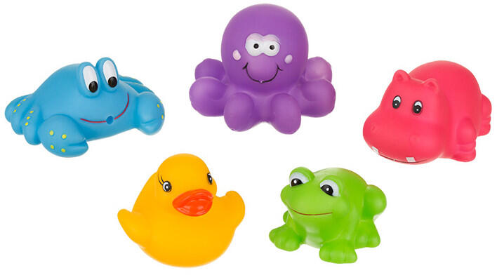 A csomagban 5 db aranyos kis színes állatka, vagyis kacsa, rák, rák, víziló, béka és polip található. Kellemesen gömbölyített, sérülésmentes formák. Méret 4-5 cm-es állatkák Fürdés után az állatkákból a víz eltávolítandó. BPA mentes