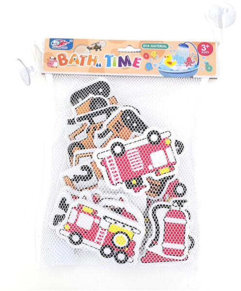 Vastag, szivacsformák, amelyek ha vizesek könnyen feltapadnak a csempére vagy kádra. A könnyű száradás érdekében, helyezd a szivacsdarabokat a tapadókorongos tartóhálóba. A készlet munkagépeket, illetve járműveket tartalmaz.