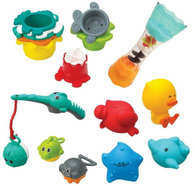 A nagyméretű, 17 darabos játékkészlet nemcsak a fürdéshez szórakoztatja gyermekét a mindennapi fürdés során. A vízi játékokkal való játék segít fejleszteni a finommotorikát és a gyermek egyes érzékeit.