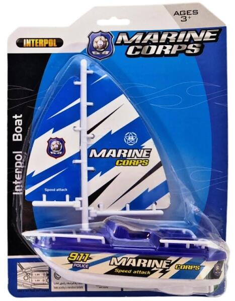 Elemmel működő műanyag vitorlás. Bekapcsolás és vízbe helyezés után lebeg.