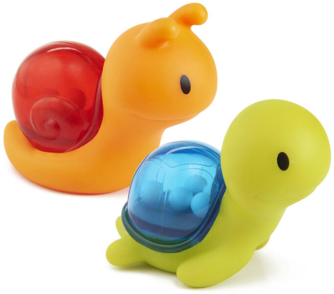 Rázza meg, csörgesse, és tegye a fürdõt a nap legszórakoztatóbb idõszakává. Ezek az aranyos állatok nem csak vizet spriccelnek, hanem csörögnek is! Tökéletes minden korosztály számára, remek elsõ fürdõjáték! Hangokkal, színekkel és textúrákkal leköti a babát. És amikor a baba felnõ, jól fog szórakozni ezekkel az állatokkal, vizet spriccelve és víz alatti buborékokat készítve. 9 hónapos kortól ajánlott!